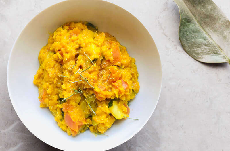 Ever since my travels to India, I love Indian food and especially Dal dishes! The lentils are gluten-free and are high in protein and have lots of fiber, as well as minerals and vitamins - everything we need to feel satisfied. The simple red Lentil-Dal with coconut milk gives wonderful warmth and energy - for me it is absolute comfort food, and it is healthy at the same time!