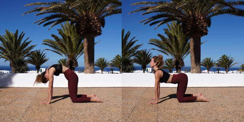 Cat – Cow stretches to warm up your spine, activate your core and to tune in with your body: