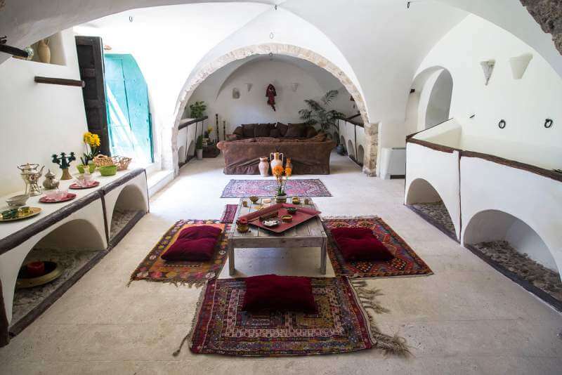 Our group will be accommodated exclusively in the main house and the cottages of the Masseria in 13 double rooms. Every room is equipped with double beds, whichcan be separated or joined together, depending on the needs. Two of the rooms (around 20sq.m each) with private bathroom, are located in the main building, above the Yoga room. A third room with private bathroom is in a cottage in the garden, with its own private patio. The other 10 double rooms, with shared bathroom – one every two rooms – are located in five cottages (around 50 sq.m each) in the garden, all with their own equipped private patio and their own kitchenette. All rooms have heating and air conditioning facilities and are elegantly furnished with antique or Sicilian style furniture.